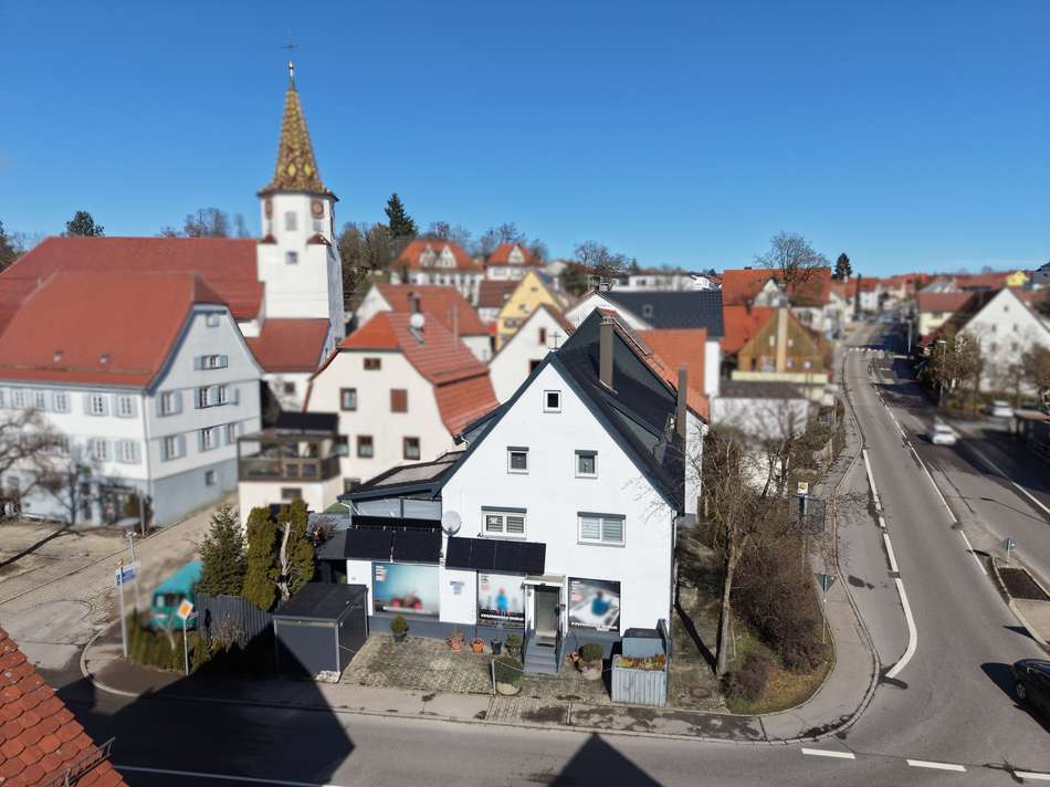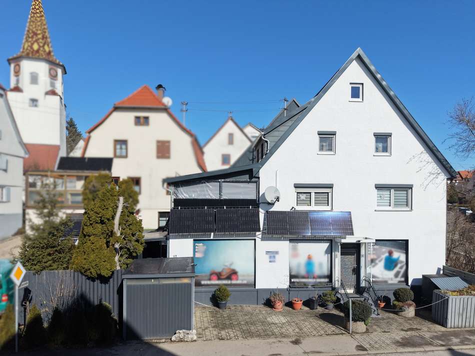 Wohn- und Geschäftshaus in zentraler Lage von Sonnenbühl-Undingen - Vielseitige Kapitalanlage oder Eigennutzung mit Gewerbeanteil In zentraler Lage von Sonnenbühl-Undingen präsentiert sich dieses attraktive Wohn- und Geschäftshaus mit vielfältigen Nutzungsmöglichkeiten. Die Kombination aus Gewerbeeinheit im Erdgeschoss und zwei großzügigen Wohneinheiten in den oberen Etagen macht die Immobilie sowohl für Kapitalanleger als auch für Eigennutzer besonders interessant. Objektbeschreibung: Erdgeschoss – Gewerbeeinheit mit separatem Zugang Im Erdgeschoss befindet sich eine Gewerbeeinheit mit eigenständigem Zugang. Die Einheit wird derzeit als Fahrschule genutzt und verfügt über: • einen großen, flexibel nutzbaren Hauptraum • ein separates, kleineres Büro • eine Toilette. Dank des separaten Eingangs ist eine klare Trennung zwischen Wohn- und Gewerbebereich gewährleistet. Die Räumlichkeiten eignen sich ideal für Büro, Praxis, Dienstleistung oder Einzelhandel. 1. Obergeschoss – Helle 4-Zimmer-Wohnung mit Dachterrasse Die großzügige Wohnung im 1. Obergeschoss überzeugt durch eine durchdachte Raumaufteilung und eine angenehme Wohnatmosphäre: • heller und großzügiger Wohn- und Essbereich mit gemütlichem Kaminofen • Einbauküche • Tageslichtbad mit schöner Eckwanne • separates WC • Schlafzimmer • Hauswirtschaftsraum bzw. Gästezimmer. Ein besonderes Highlight ist die große, überdachte Dachterrasse, die zusätzlichen Wohnkomfort bietet und zum Entspannen einlädt. Dachgeschoss – Schöne 4-Zimmer-Wohnung Die Wohnung im Dachgeschoss bietet ebenfalls großzügige Platzverhältnisse: • großes Wohn- und Esszimmer • Einbauküche • Kinder- oder Gästezimmer • Schlafzimmer • Badezimmer mit Wanne • geräumiger Hobbyraum Außenbereich & Nebenflächen Auch der Außenbereich bietet praktische Ergänzungen: • Eine Garage und 3 Stellplatz • kleiner Gartenbereich • Gartenhaus/Abstellraum • separater Raum, derzeit als Werkstatt genutzt